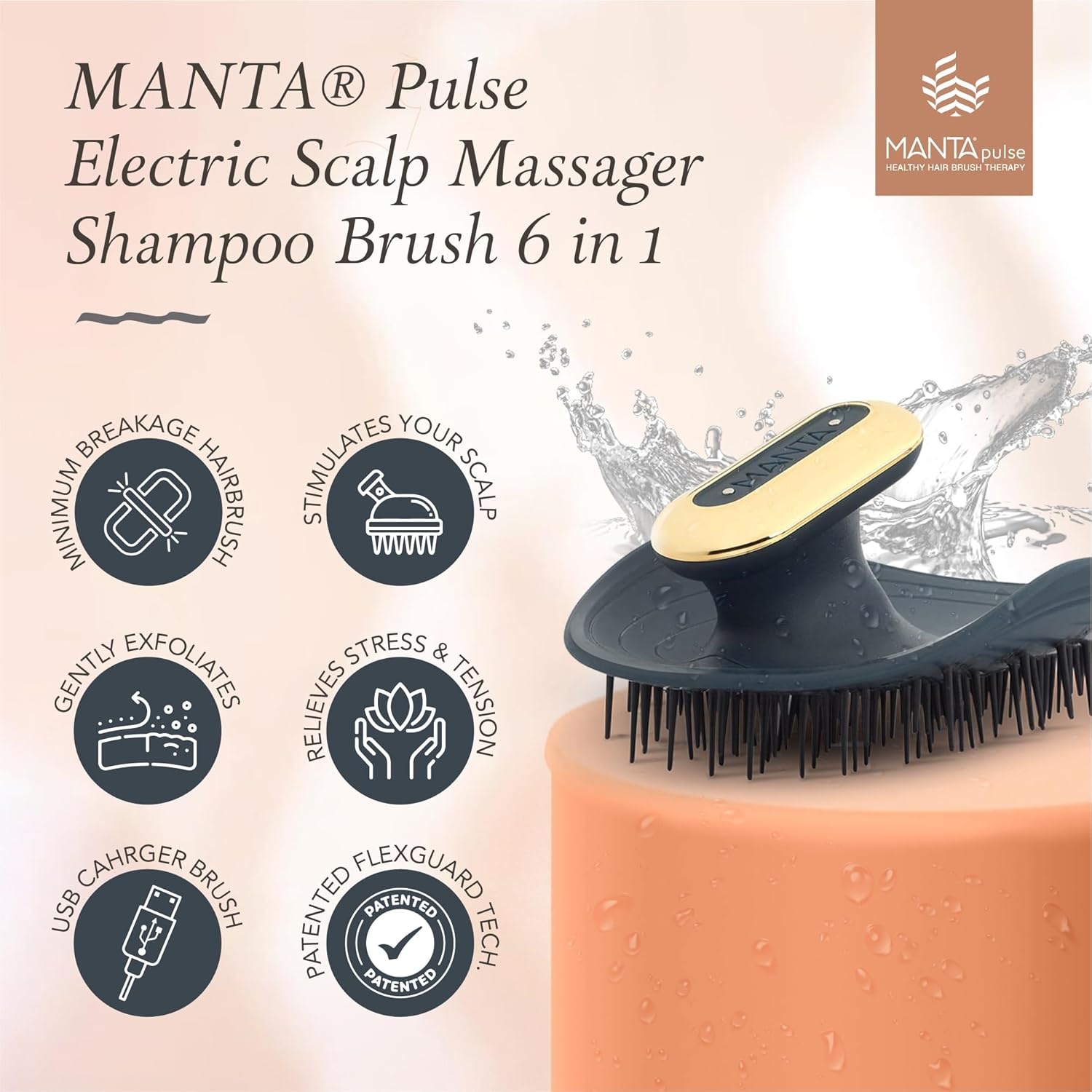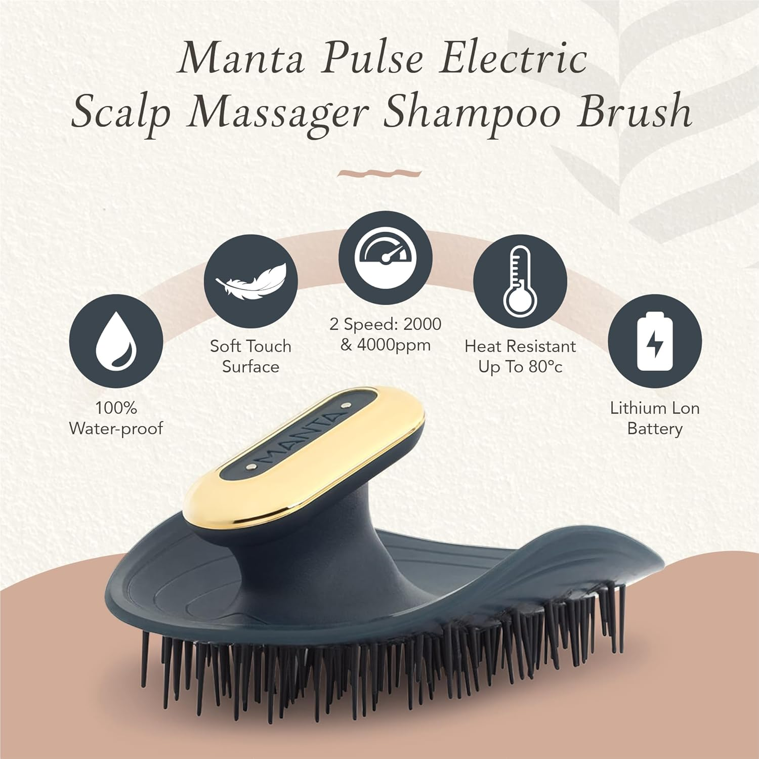 Manta Pulse Electric Scalp Massager Brush – Exfoliating Shower Brush for Hair Growth, Shampoo Scalp Massager with Shower Holder, Blue